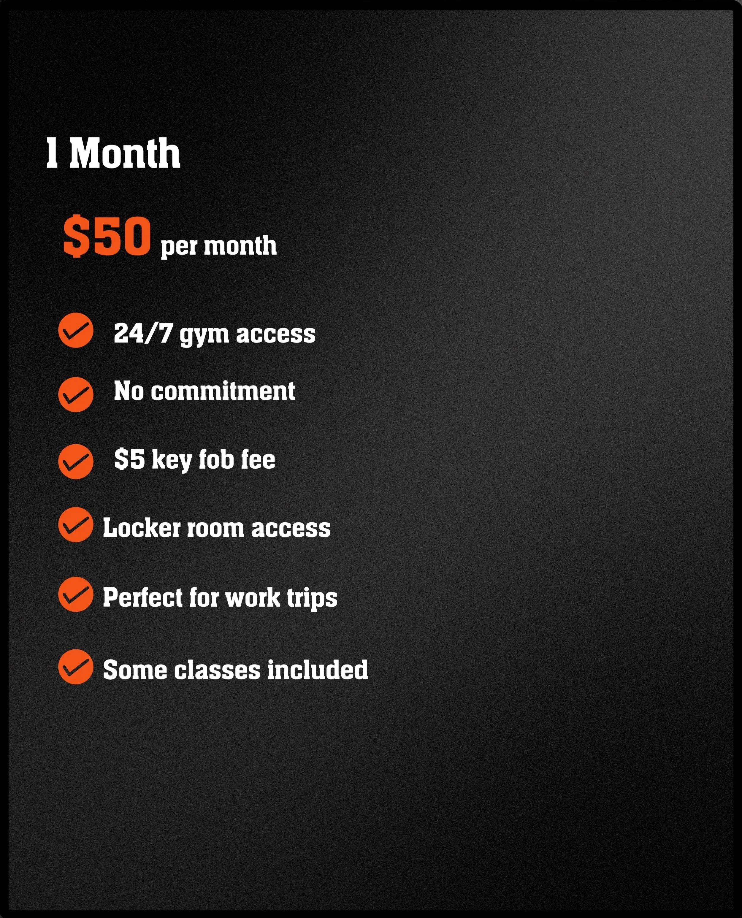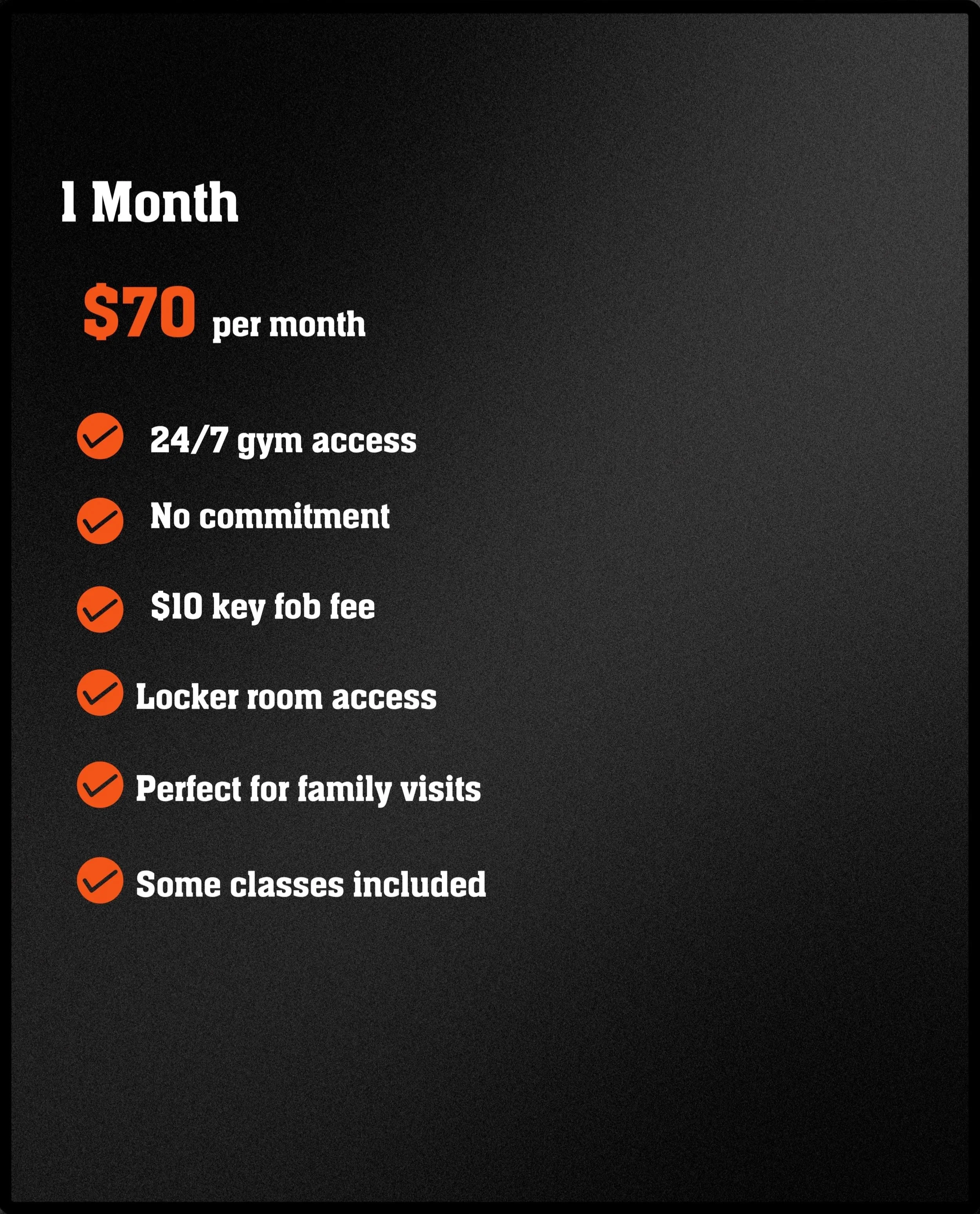 All of our memberships include 24/7 gym access, so you can work out whenever it fits your schedule! To activate your access, a card must be placed on file at the time of sign-up. This ensures your membership stays active and your personal entry code remains valid for around-the-clock use.